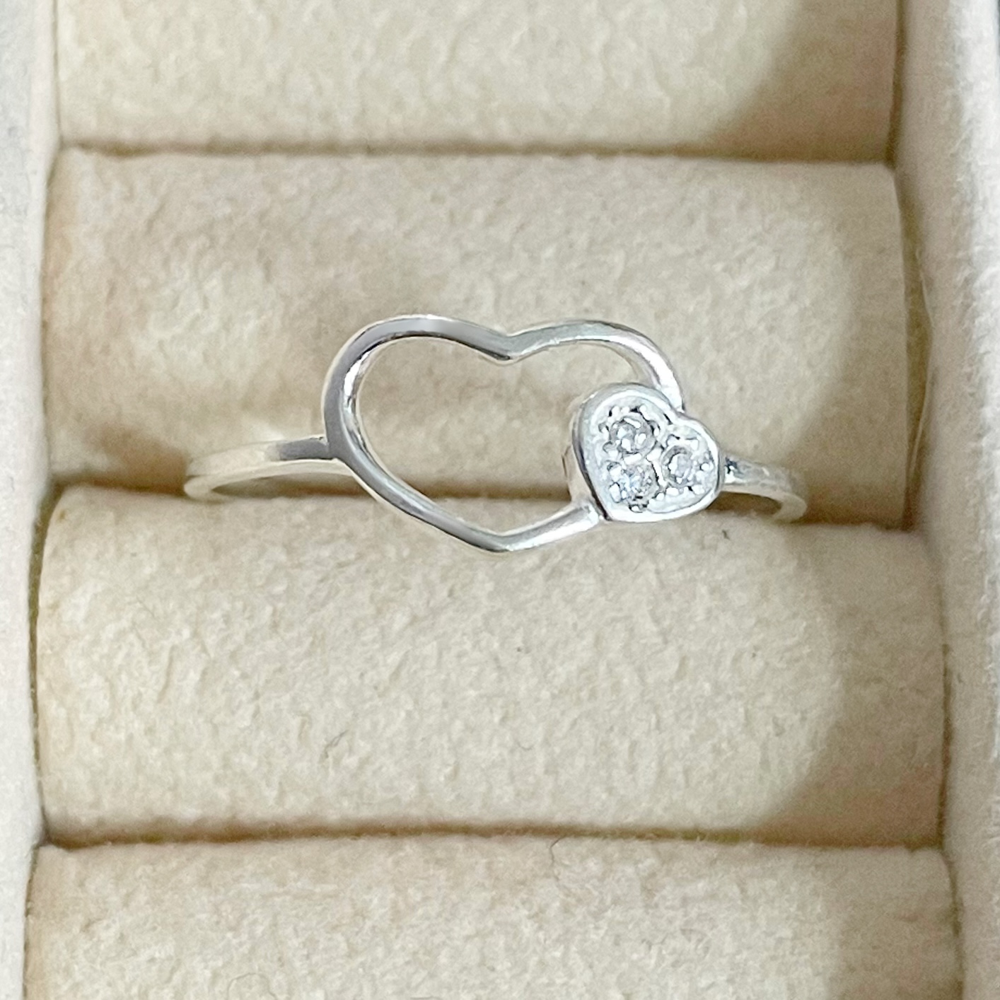 Anel Coração Duplo Vazado e com Zircônia
