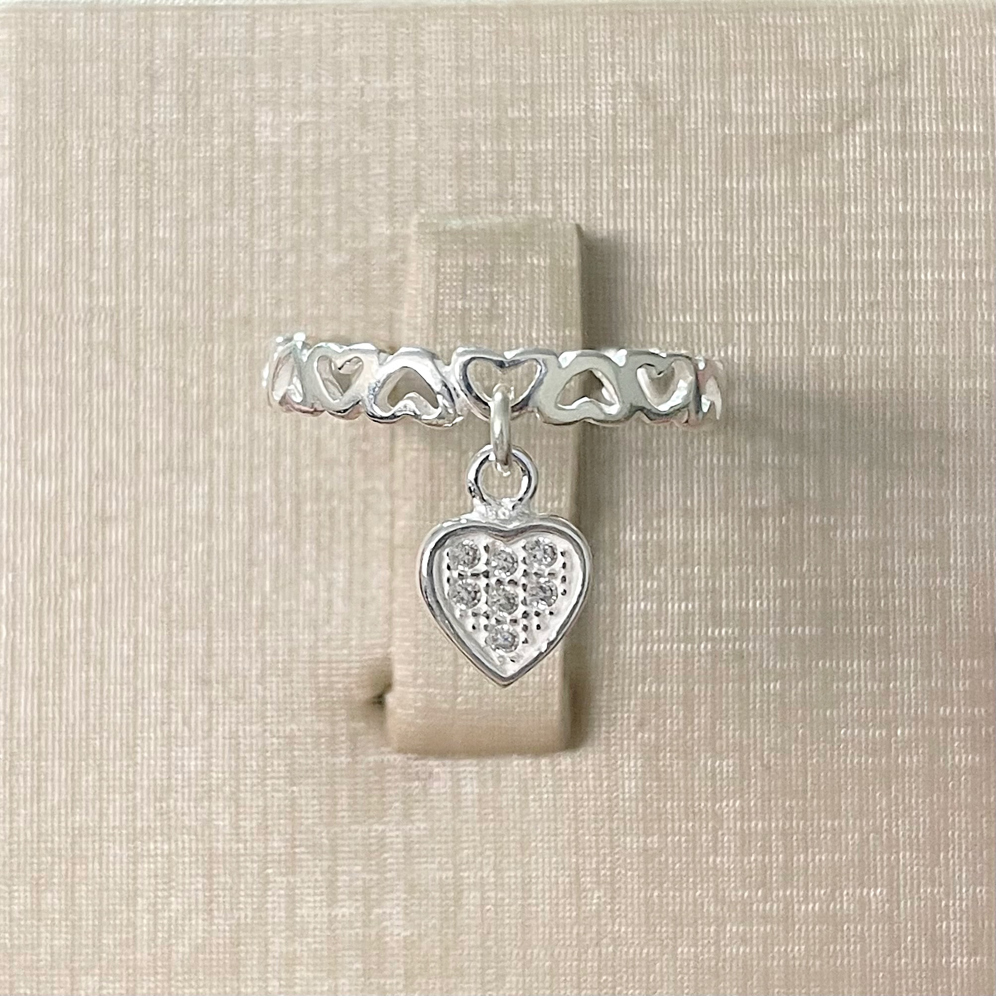 Anel Corações com Coração Pendurado