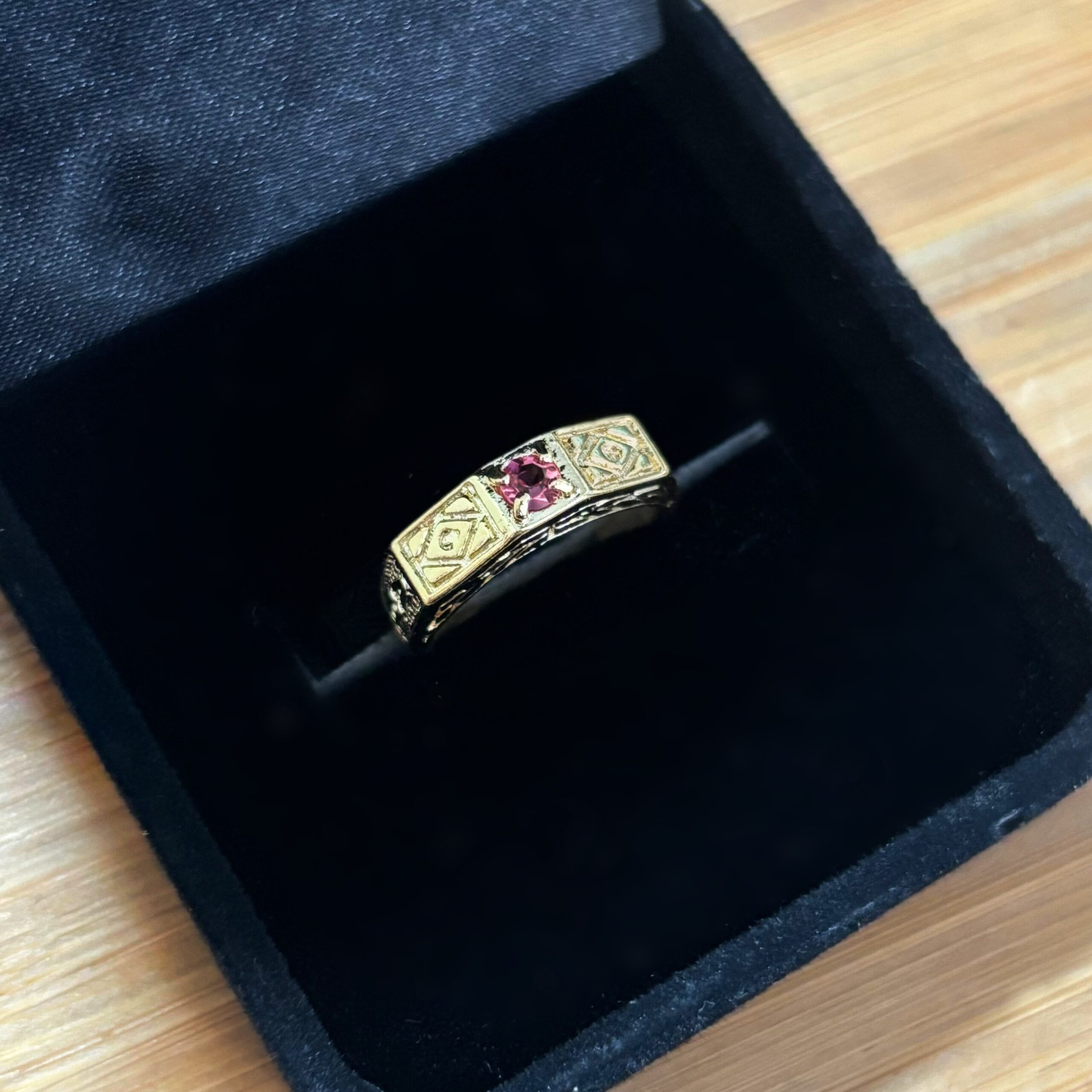 Anel infantil folheado a ouro para formatura do primeiro ano, antigo C.A. Regulável do tamanho 5 ao 9. Código 98001