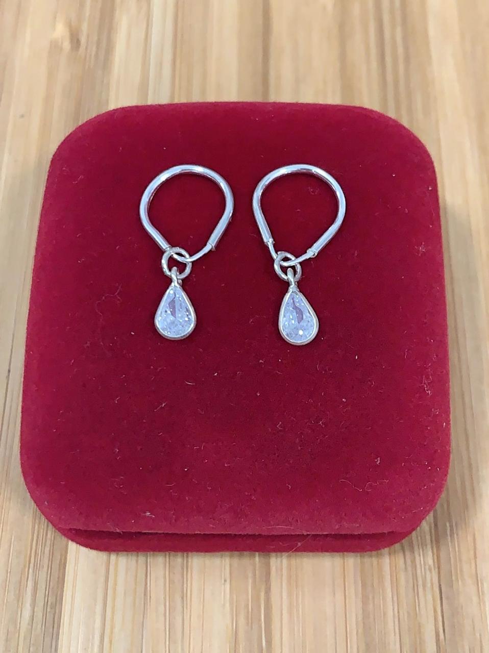 Argola Gota com Pingente Zircônia Gota 2cm por 0,9cm