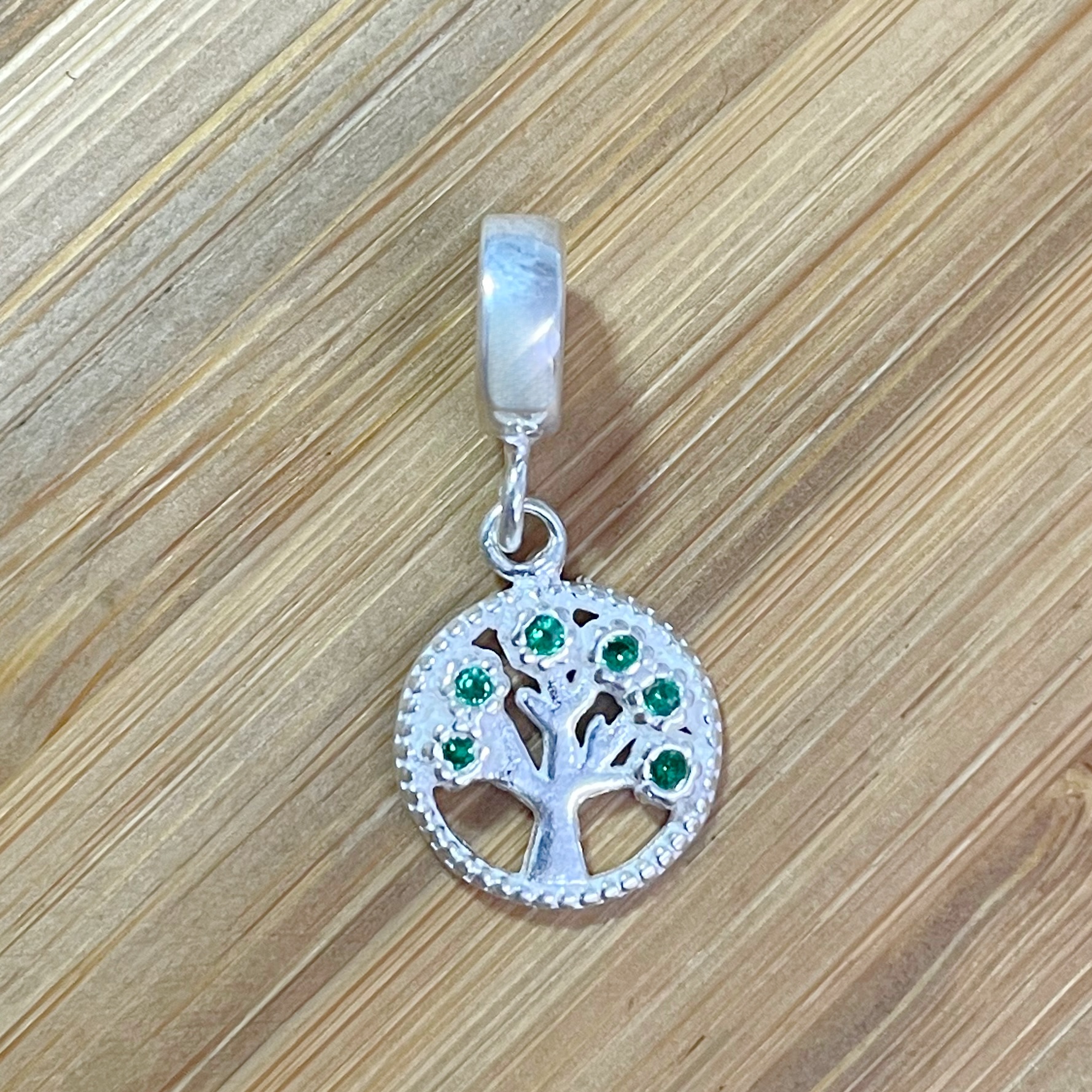 Berloque Árvore da Vida Redonda com Zircônia Verde