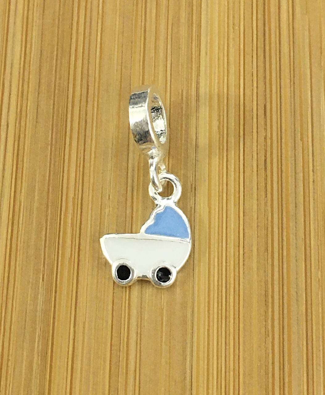Berloque Carrinho de Bebê Azul