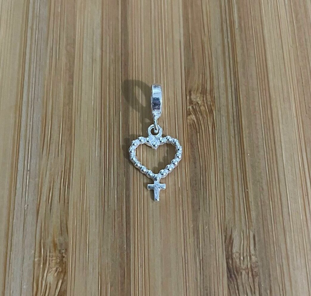 Berloque Coração Pontilhado c/ Cruz