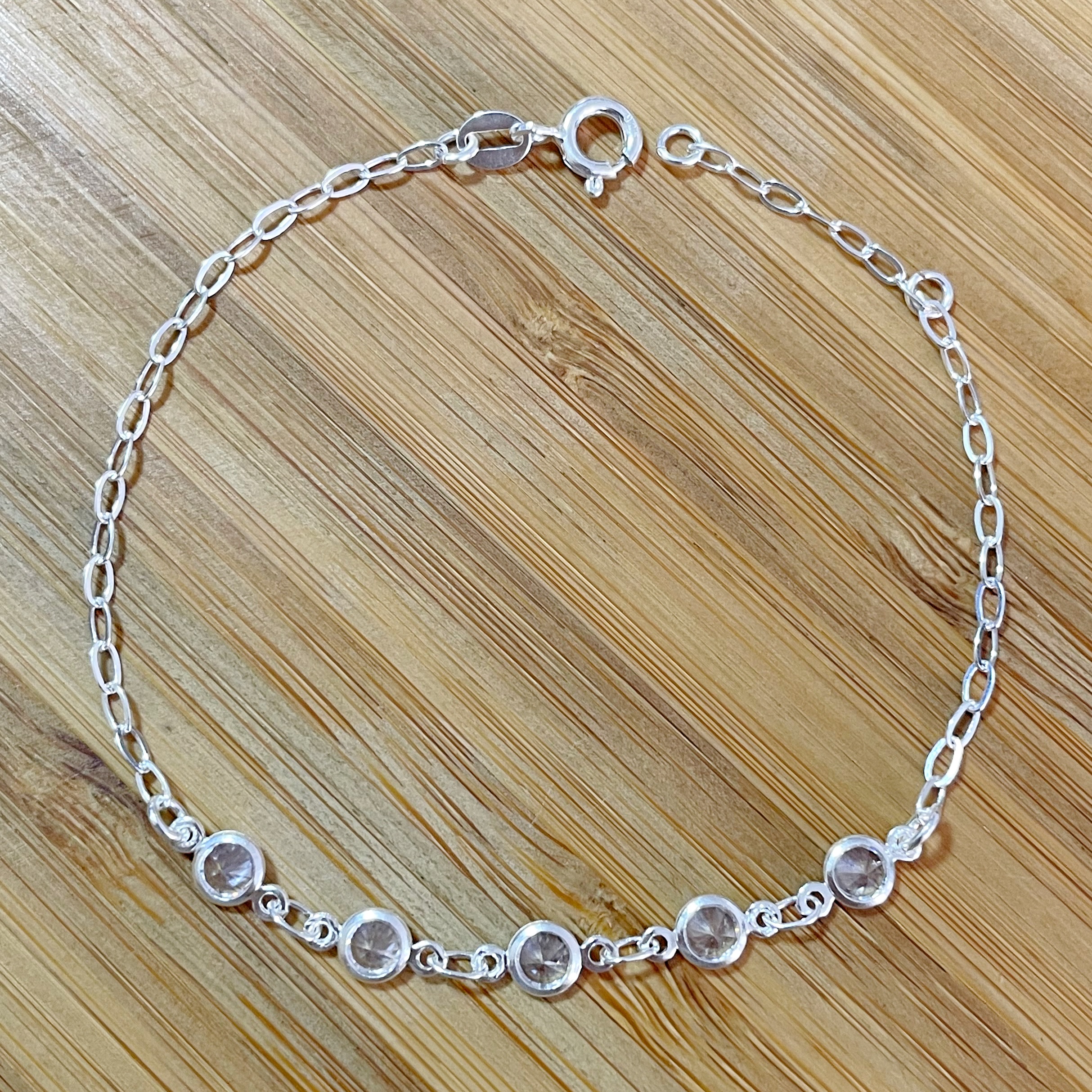 Pulseira 5 Zircônias Brancas Prata em Volta
