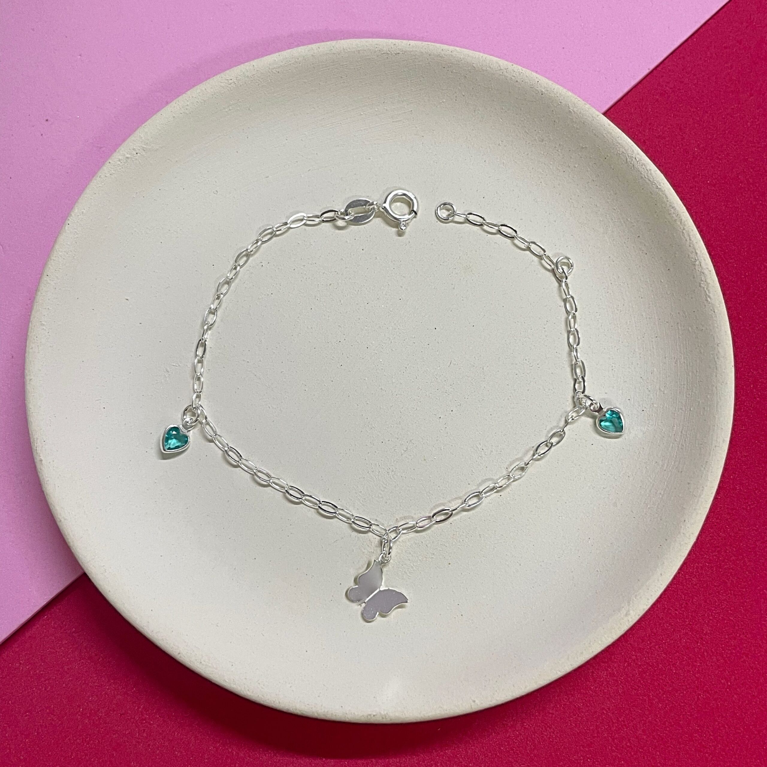 Pulseira Borboleta 3D com Zircônia Verde Água