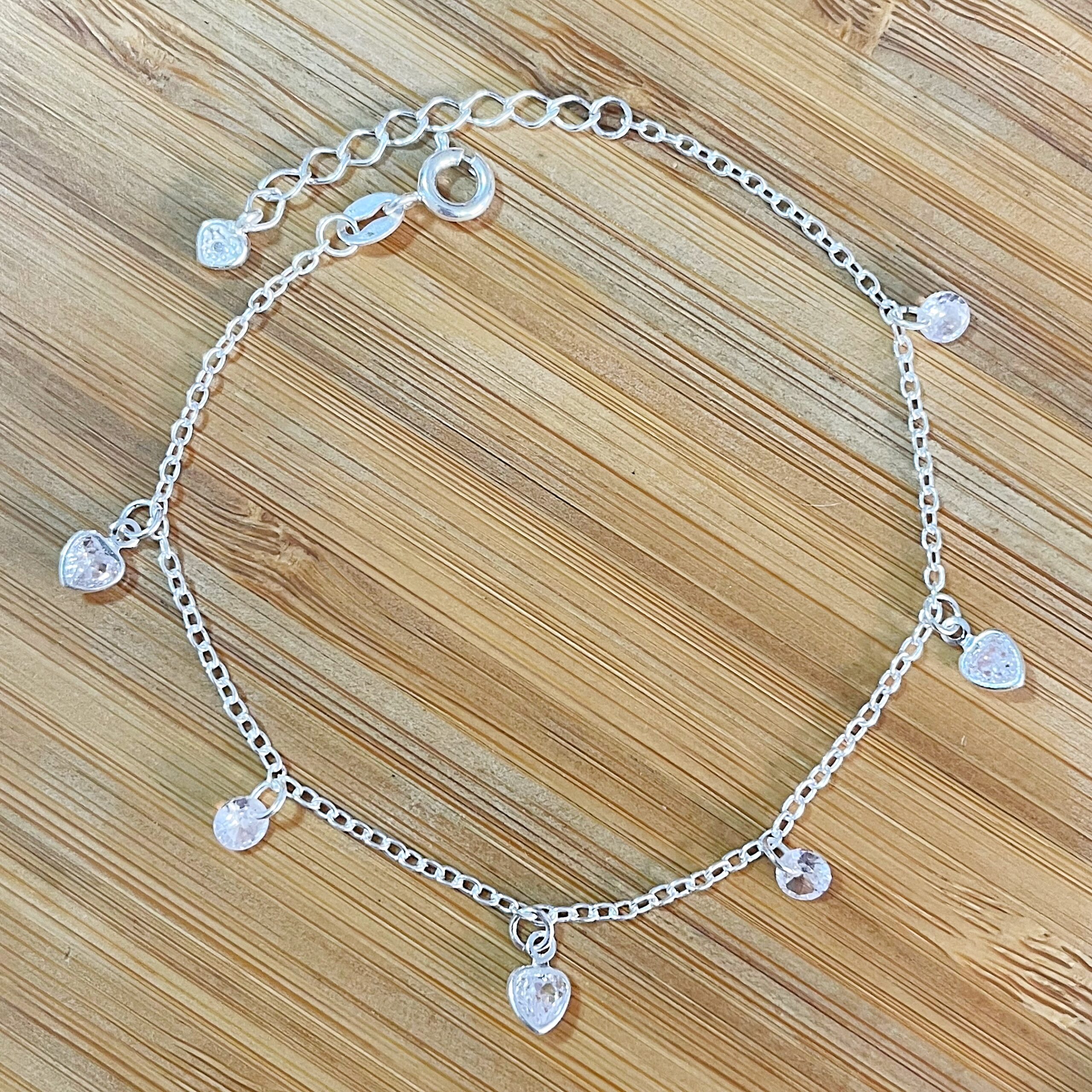 Pulseira Zircônias Redondas e Corações Brancas